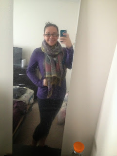 I really loved this guy too. I just got these pants and the brown ones above on some what of a sale at Kohl's....you know I'm kind of desperate for pants when I go a step up in price like that. These are a black and grey houndstooth pattern and I paired them with a black button up from F21. You can't see it from here but the top has sort of a shadow stripe sheer look to it and has been around almost as long as that purple cardigan. This was actually the outfit I was wearing the night of Ricky's accident so this outfit will always have a place in my heart.